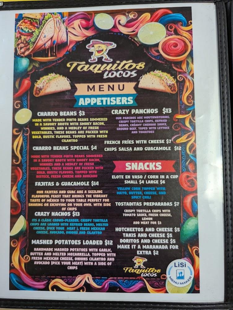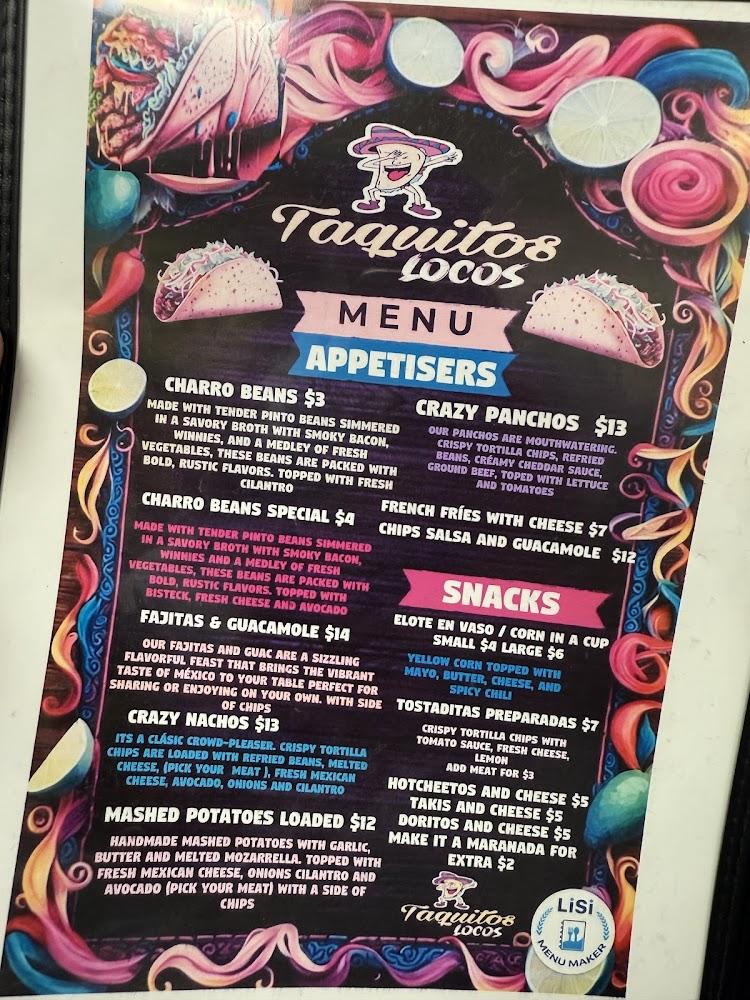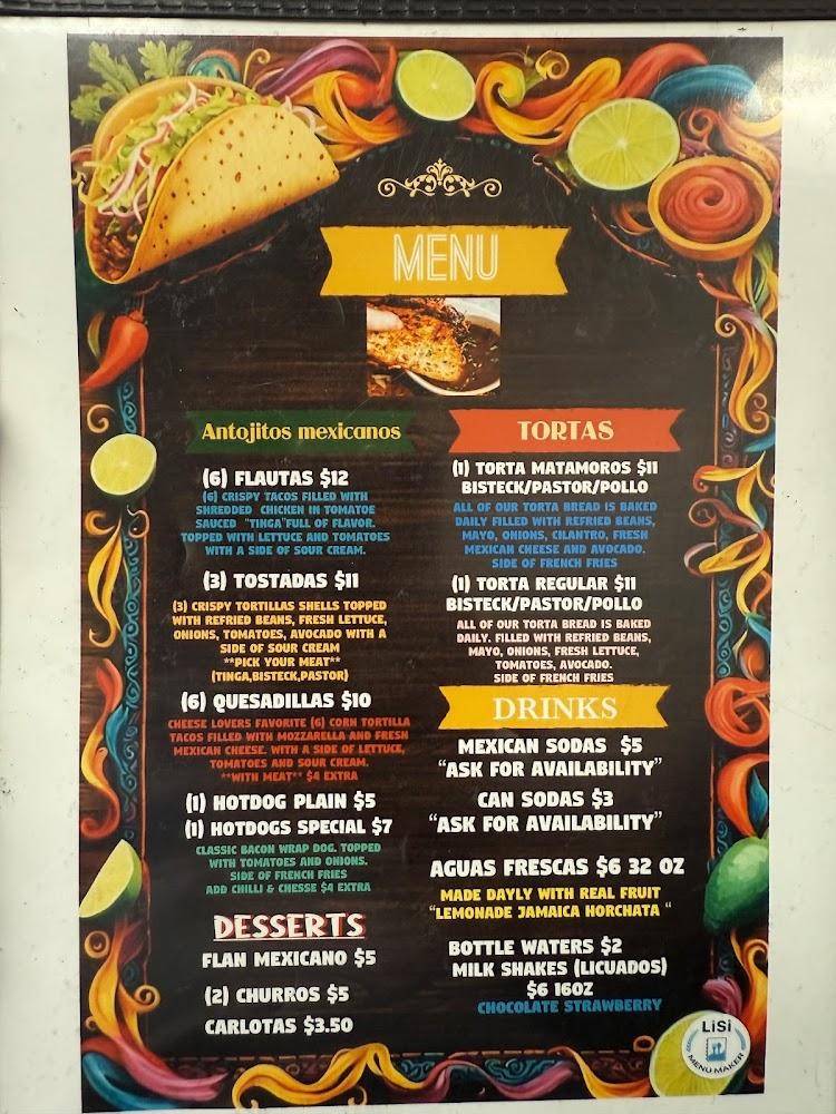 The menu at Taquitos Locos offers a delightful array of traditional Mexican dishes. From tacos to tortas, each item highlights authentic recipes. Combo plates present a great value, allowing guests to sample multiple flavors at once. The focus on simple, comforting food means everyone can find something to enjoy.